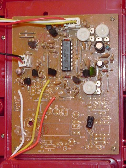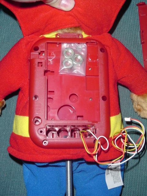 I have 13 pictures, below. I understand this model to have only one servo to control all facial features. I've gained access to the main circuit board, but not the head assembly yet. By the way, there is no speaker in this display model. It also lacks the cassette playback mechanism, making it apparently dependent on an external demo system.