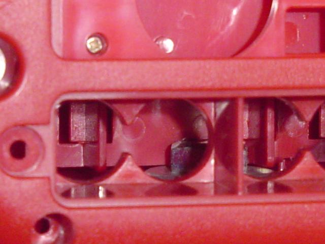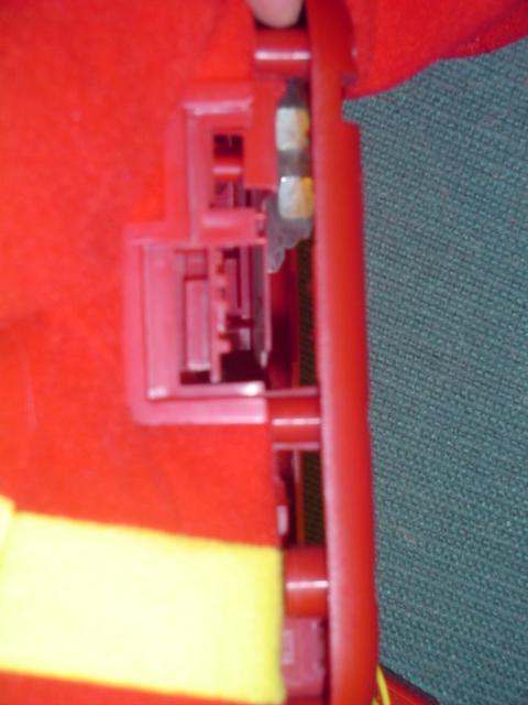 Like I said, it's a display unit. What does that mean? Well, I took it home and got it out of the box. The first thing I noticed was the threaded rod up its, well, butt. Good way to secure it to a store shelf, I guess. I popped open the tape door and found no playback equipment. There was just a bag of nuts (3) for the rod, and a three-wire cable that evidently connects to some sort of demo playback system.